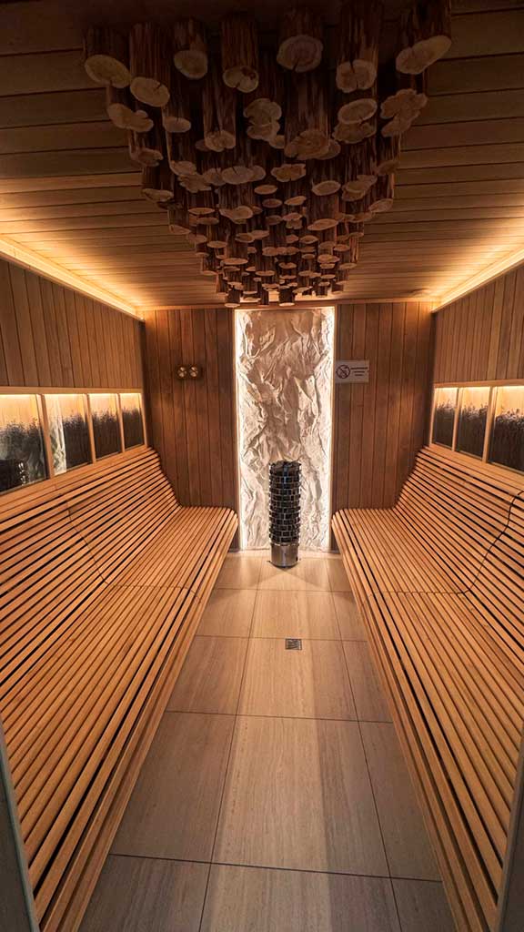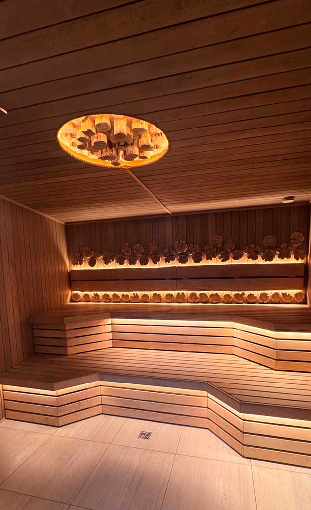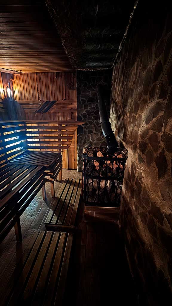 Фінська сауна є частиною SPA-комплексу готелю та відома своїм сухим, глибоким теплом. Вона сприяє розслабленню мʼязів, покращенню самопочуття та відновленню після активного дня в горах.